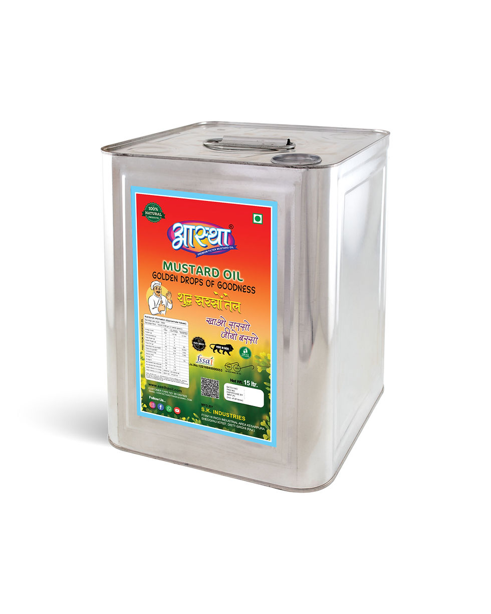 Aastha Mustard Oil is one of the finest mustard oil brands in India, known for its purity, rich flavor, and unmatched quality. Sourced directly from trusted farms, only the best mustard seeds are selected for oil extraction. These seeds go through a meticulous machine-cleaning process to ensure they are free from impurities before processing. The oil is extracted using a modern automatic oil expeller, which operates under controlled conditions to preserve the natural taste and nutritional goodness of mustard. Once extracted, the oil is expeller-filtered to maintain clarity and purity, keeping the essential nutrients intact. Packed with Omega-3 and Omega-6 fatty acids, Aastha Mustard Oil supports heart health and overall wellness. Also known as Kachi Ghani Oil, it’s ideal for everyday cooking and deep frying due to its naturally high smoke point. Finally, the oil is hygienically packed to lock in freshness and ensure it reaches you just as nature intended pure, flavorful, and full of health.
